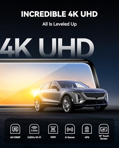 WOLFBOX G930 10” Rear View Mirror Camera with 5.8GHz WiFi, 4K Dash Cam Front and Rear with WDR, Touch Screen Rearview Mirror Backup Camera, Parking Monitor, Reverse Assist, Includes 64GB Card & GPS