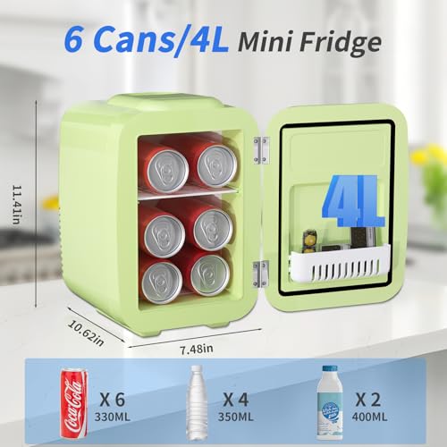 YASHE Mini Fridge for Bedroom, 4 Liter/6 Cans Small Refrigerator, 110V AC/ 12V DC Thermoelectric Cooler and Warmer for Drink Office Dorm Car, Green